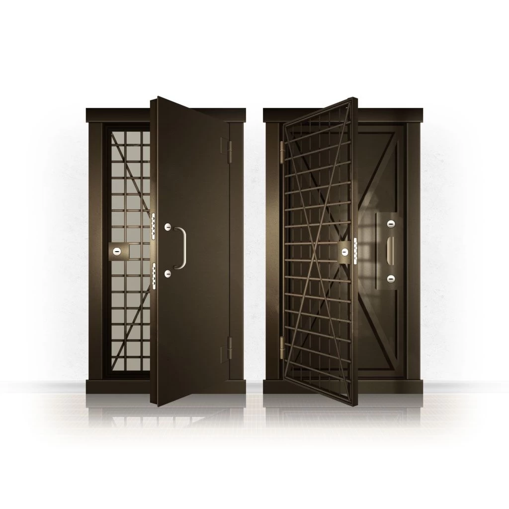 Металлические двери КХО и КХН представляют собой входные блоки, обладающие высоким уровнем взломостойкости и состоят из трех основных элементов: усиленного каркаса, сплошного металлического полотна и решетчатой двери. Дверной блок изготавливается из стального уголка 100*100 мм. Места крепления блока к стене цементируются и закрываются стальными наличниками шириной 40 мм. Крепеж заходит вглубь стены на 80 мм. В конструкции внешней створки монтируются ребра жесткости, для обшивки используется сталь толщиной не менее 3 мм. Внутренняя решетка изготавливается из прутка диаметром 16 мм. Размер ячеек решетки должен составлять не более 15 на 15 см. В точках пересечения прутья надежно приваривают друг к другу. В КХО и КХН необходимо поддерживать определенную температуру и влажность. Для этого внутреннее пространство глухой двери заполняется теплоизоляционным материалом, а по периметру двери приклеивается уплотнитель. Такие двери оборудуются замками с повышенным уровнем взломостойкости. Специализированные двери КХО и КХН в Верещагино могут быть оснащены сигнализацией, в конструкции могут быть проушины для навесного замка и элементами для опечатывания. Если идет речь о двери в комнату хранения оружия, в створке оборудуется окно для выдачи оружия и спец. средств, которое накрывается стальной дверцей.